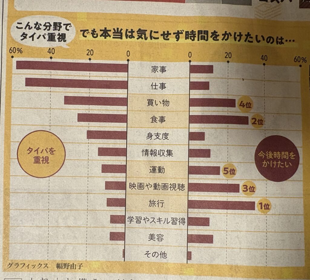 家事や仕事はタイパ重視だけど、旅行や食事は時間をかけたい。経験価値を大事にしたいんだなぁという印象を受けました。